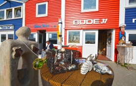 0.00 of 0 votes1. Fahrt mit einem Börteboot. Sie haben die Möglichkeit, eine ca. 1-stündige Rundfahrt mit dem Börteboot zu machen.2. Mit der Fähre auf die DüneWeißer Sandstrand, Dünen und das Hochseeklima geben der vorgelagerten Düne fast einen Karibik-Touch bei Sonnenschein. Spektakulär: Kegelrobben und Seehunde erleben Sie hier mit 30 m Sicherheitsabstand in freier Natur.3. Rundgang auf dem OberlandMit dem Fahrstuhl (oder auch über Treppen) kommen Sie auf das Oberland der roten Insel. Der Rundgang (rechts herum über die Schrebergärten, links herum an den Lummenfelsen vorbei) hat bei der Langen Anna, Helgolands Wahrzeichen, seinen Höhepunkt. Naturschauspiel: das bunte Treiben der Trottellummen und Bastölpel, die die Felsen bewohnen. Fantastisch: der weite Blick in alles Himmelsrichtungen in die Nordsee.4. Helgolands HummerbudenDie bunten ehemaligen Fischerhütten stehen unter Denkmalschutz und beherbergen heute Restaurants, Kneipen und Souvenierlädchen.5. Zollfreies ShoppenSchnaps, Rauchwaren, Süßigkeiten, Schmuck, Mode... auf Helgoland ist alles Mehrwertsteuerbefreit. Hier kann man Günstiges und Außergewöhnliches erwerben.6. Knieper & EiergrogKulinarisch schreiben sich die Helgoländer diese beiden Spezialitäten auf die rot-weiß-grüne Inselfahne.Info unter www.helgoland.deKarten für einen Tagesausflug ab Büsum mit Adler-Eils gibt`s hier:Reetdach-Pavillon am Ankerplatz: täglich von 8:00 Uhr bis 19:00 UhrTel. (0 48 34) 36 12 und online unter www.adler-eils.de