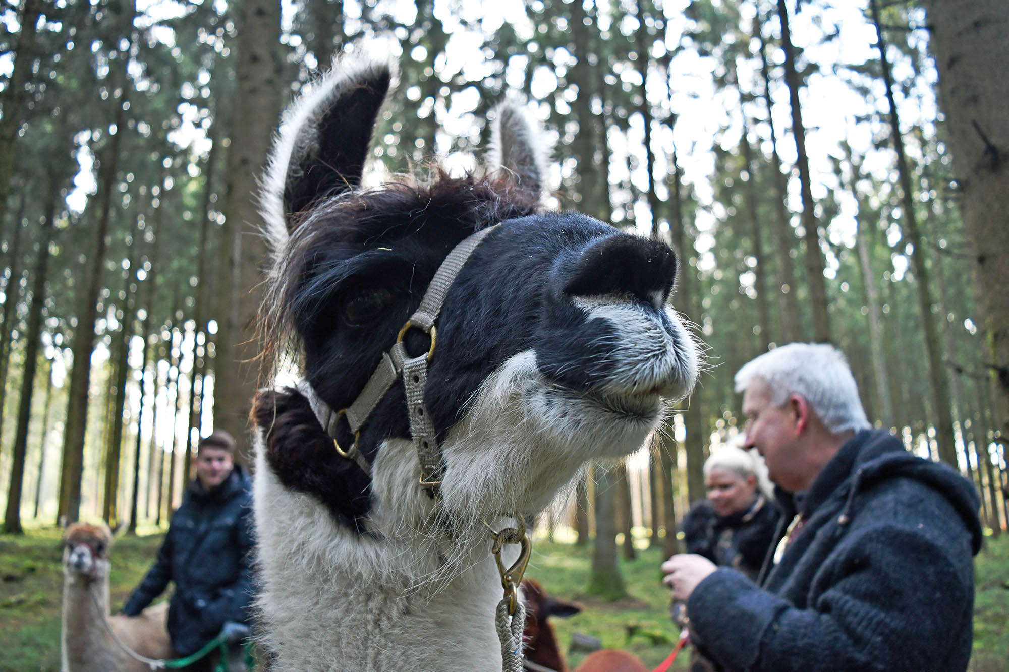 Da sowohl Alpakas als auch Lamas Herdentiere sind, ging es nach kurzem Kräftemessen dann auch für uns weiter und wir hatten den Anschluss an unsere Herde wiedergefunden. Ab in den Wald.