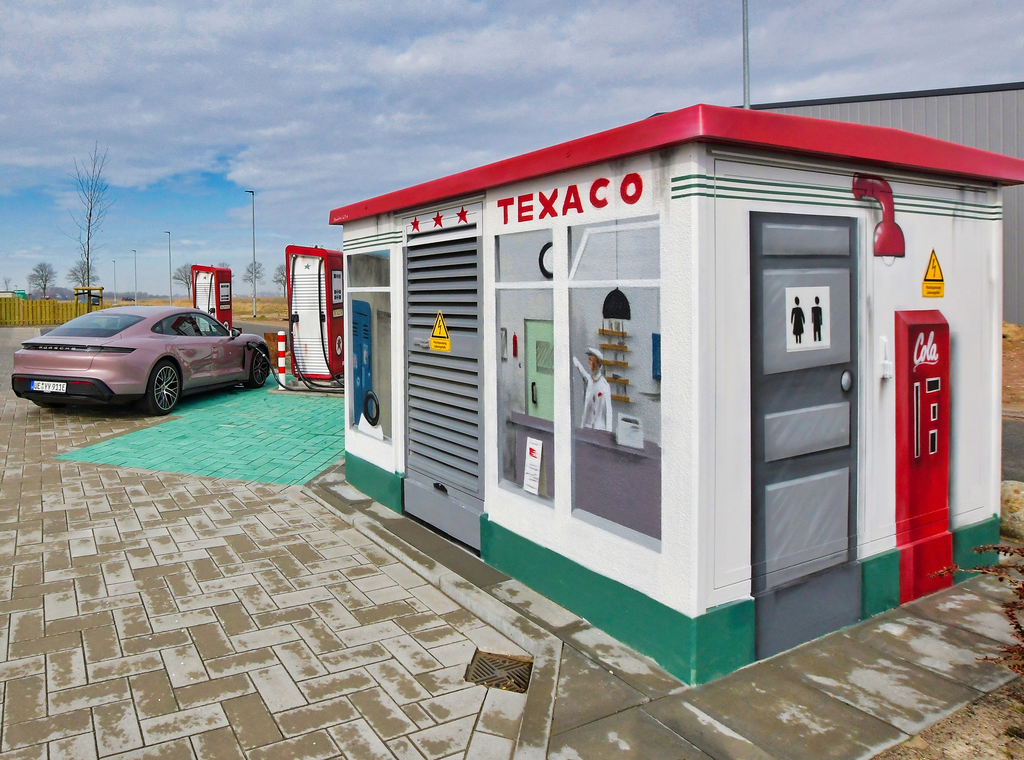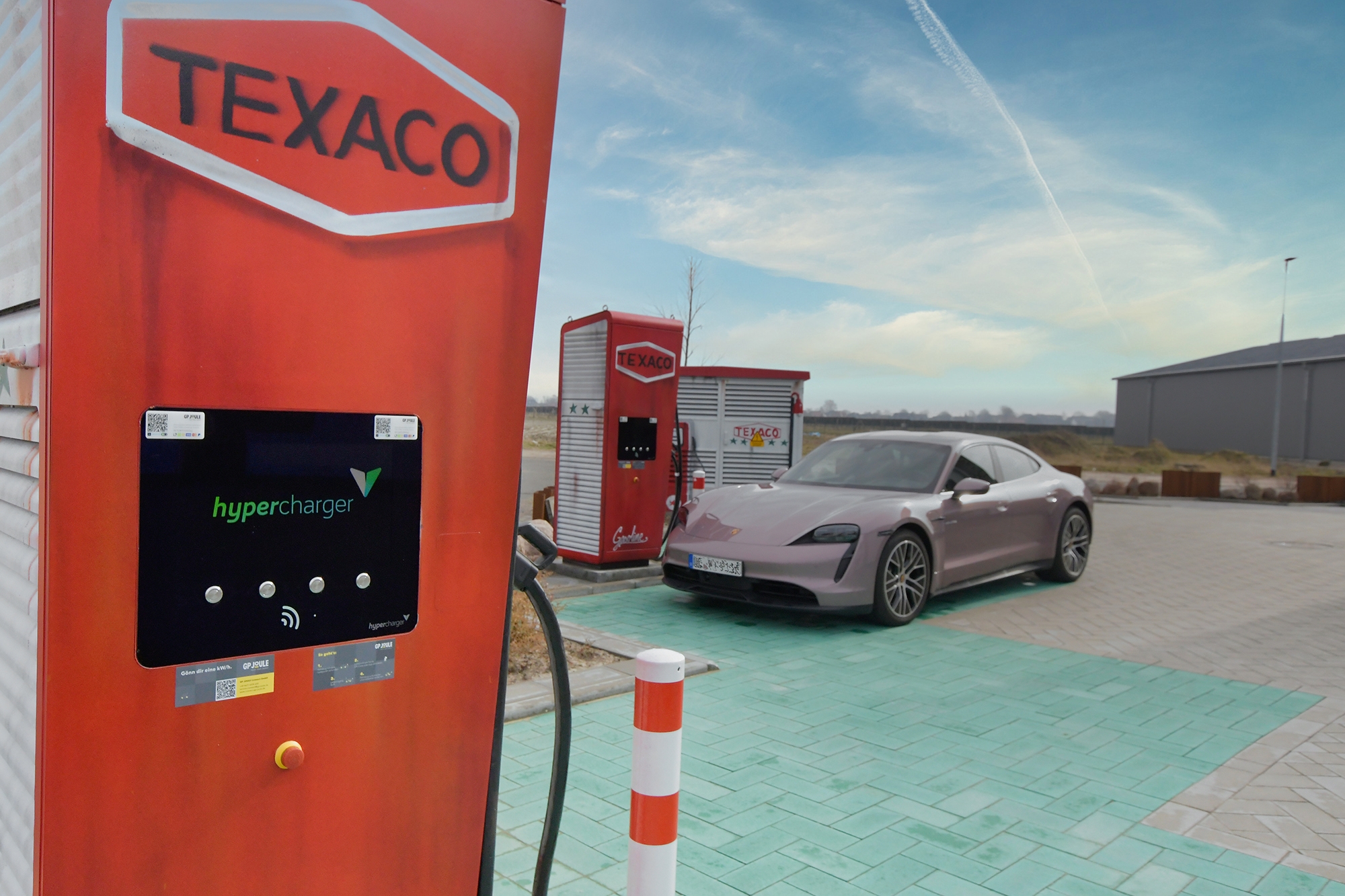 Schon jetzt im Betrieb sind die zwei Ultra-Schnell-Ladesäulen vor dem Gebäude. Hier können alle, die mit einem DC-ladefähigem E-Auto mit CCS-Anschlüssen unterwegs sind ihr Fahrzeug, schnell und unkompliziert aufladen.