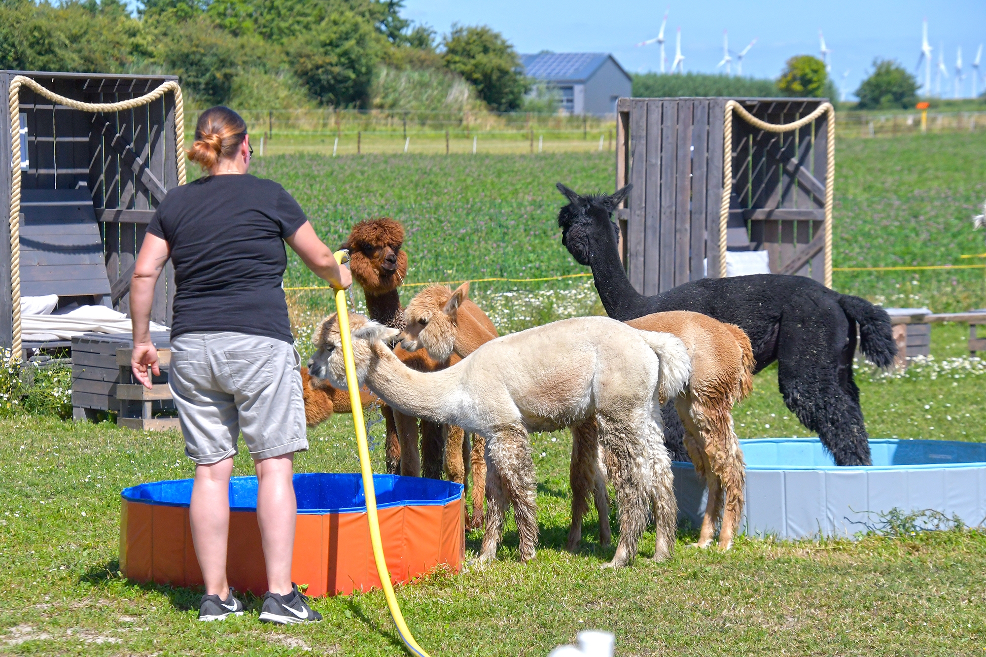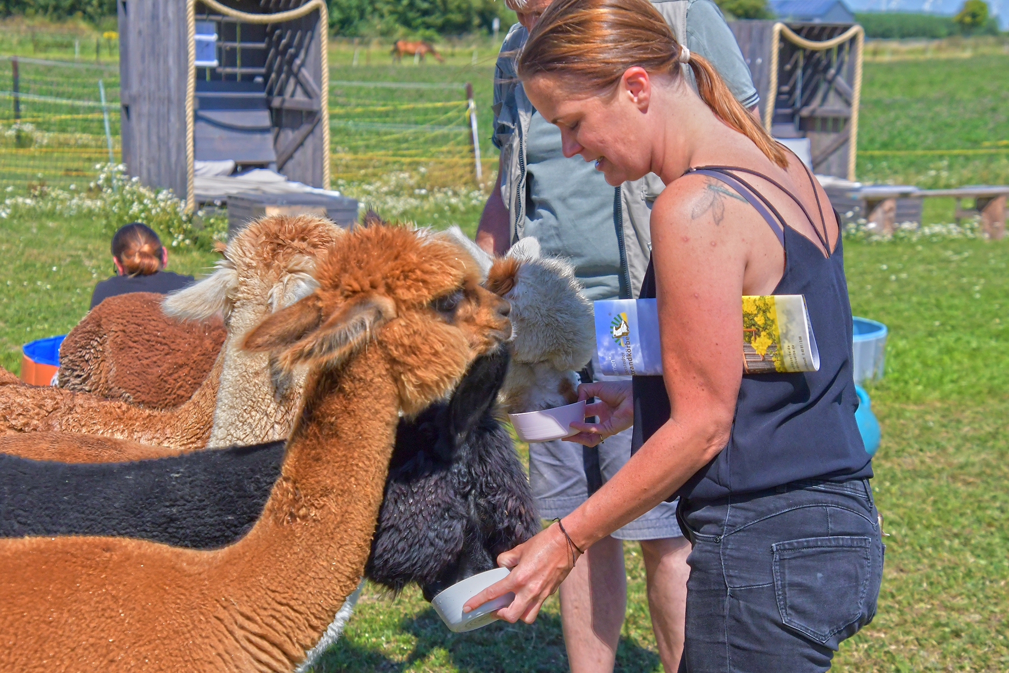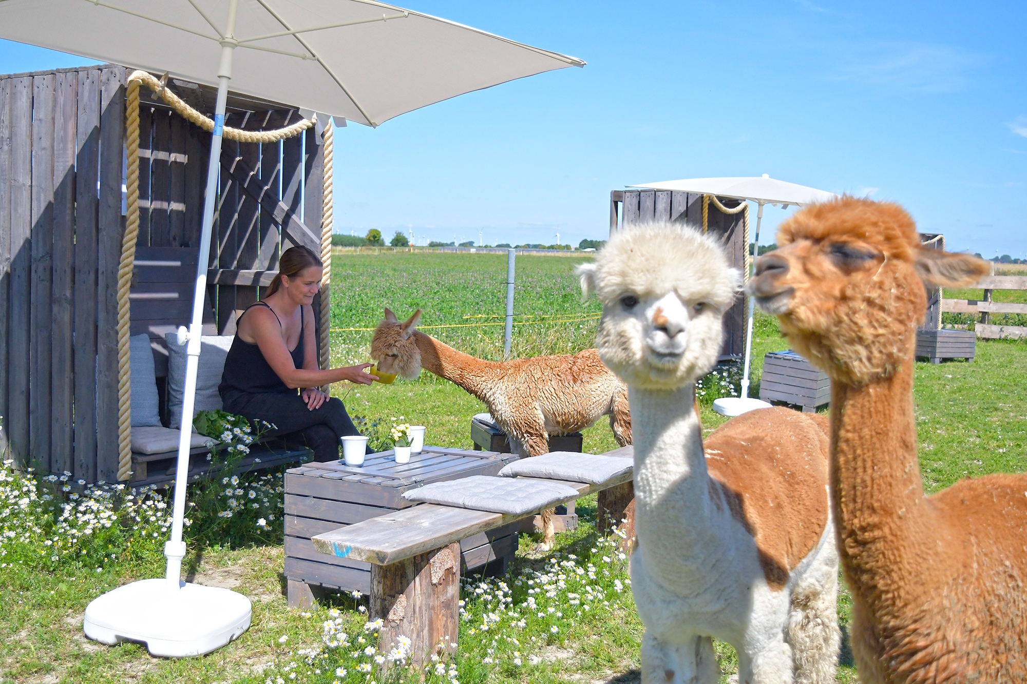 „Kennenlernen“, „Lüttes Frohstück zwischen unseren Alpakas“, „Alpaka-Führerschein“ oder „Begegnung – der Kaffee der besonderen Art“ so die Namen der buchbaren Alpaka-Auszeiten. Demnächst kommen noch Alpaka-Spaziergänge, Touren, Yoga und sogar das Alpakaerlebnis als Hochzeitsgeschenk dazu.